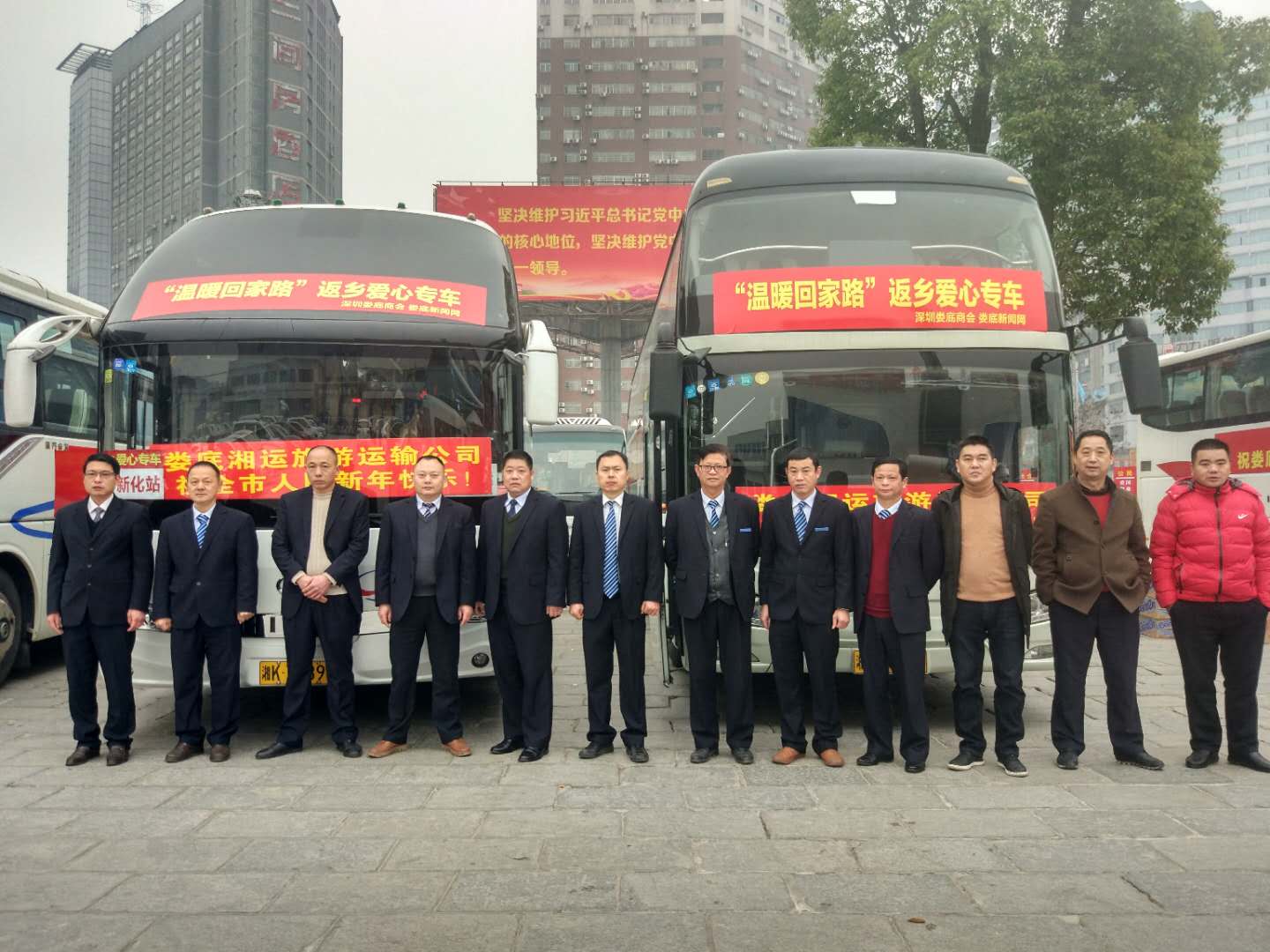 據(jù)了解,"溫暖回家專車免費接送困難務(wù)工人員返鄉(xiāng)活動是由市人社局、市總工會、市交通局主辦的2019年度溫暖回家路大型公益活動十大活動之一,婁底湘運旅游運輸公司光榮承接了此次運輸任務(wù)。此次任務(wù)得到了集團的高度重視,集團董事長、總經(jīng)理彭瑞華進行了親自指導并于25日來到旅游公司對"溫暖回家專車運力準備工作進行現(xiàn)場檢查。為圓滿完成此次運輸任務(wù),旅游公司認真部署,精心準備,挑選了資質(zhì)優(yōu)、性能好、技術(shù)過硬的車輛和駕駛員,對參加此次任務(wù)的車輛進行了全面安全技術(shù)檢查,確保車況良好,對駕駛員進行了重點安全行車教育和培訓。公司共派出五臺豪華大巴赴深圳,分五條線路接返鄉(xiāng)人員回婁底五縣市區(qū),從深圳返鄉(xiāng)行程約八百公里,預(yù)計行車時間12小時左右,公司為每臺車配備了兩名駕駛員,采取輪流換班、嚴格執(zhí)行每四小時落地休息以及夜間凌晨2點到5點休息制度和五不兩確保安全承諾。車上還為乘客貼心準備了食品、飲料、水果,更有活動組織方提供的大禮包,返鄉(xiāng)人員一坐上車,就會感受到來自家鄉(xiāng)的濃濃溫暖情。公司負責人表示,一定會為返鄉(xiāng)親人們提供一個安全、舒適、優(yōu)質(zhì)的乘車環(huán)境,確保他們平安到家。