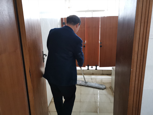 3月13號,是輪值衛(wèi)生的第一個星期,總部五樓衛(wèi)生由審計部負(fù)責(zé),公司監(jiān)事、紀(jì)委書記黃文和審計部的同事把五樓男女廁所、樓梯、走廊過道衛(wèi)生里里外外打掃得干干凈凈。負(fù)責(zé)三樓衛(wèi)生的黨群部部長鐘愛華和四樓衛(wèi)生的保衛(wèi)部部長姚邵洪也是帶著部門同事一起打掃衛(wèi)生。